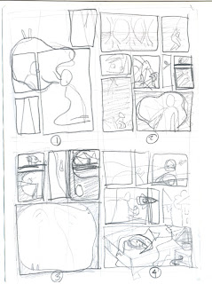 Decidí dibujar en papel A3, usando como punto de partida una distribución básica de 3 x 3 viñetas.